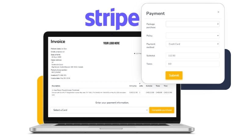Streamline your payment management with our Stripe integration. Patients can easily pay their invoices from your custom-branded patient portal, or you can complete billing for them in-clinic with just a few clicks. Enhance convenience and speed up transactions while reducing manual entry errors. Use another processor or accept other forms of payment? Simply record the payment!